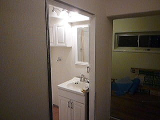 洗面台のドアが小さな台なのに、幅が大きくて開ける時、後ろにさがらないとならない。